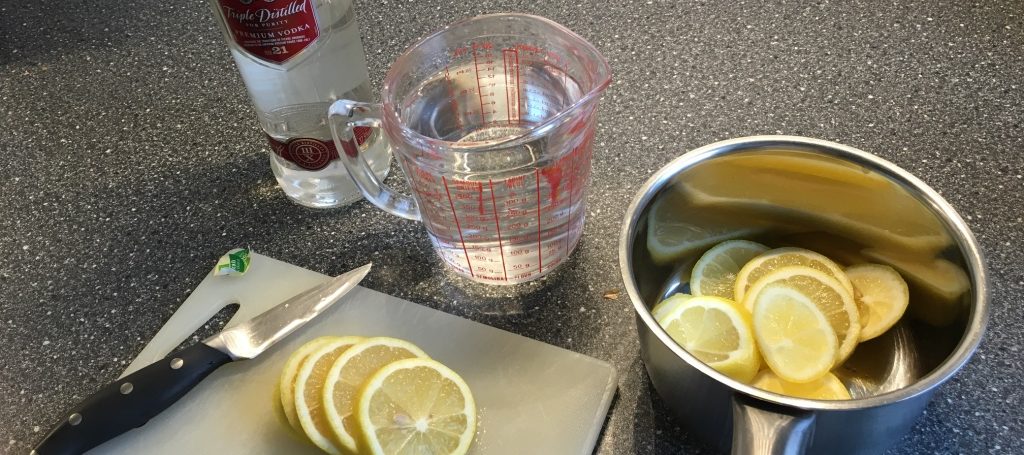 Det første jeg løb tør for var hårlakken, og jeg har derfor ledt efter en opskrift på en hjemmelavet hårspray, som jeg ville forsøge mig med, når der ikke var mere tilbage. I juleferien blev der endeligt tid til forsøget, ud fra en simpel opskrift, der kun kræver to citroner, 0,5 l vand og 2 spsk vodka.