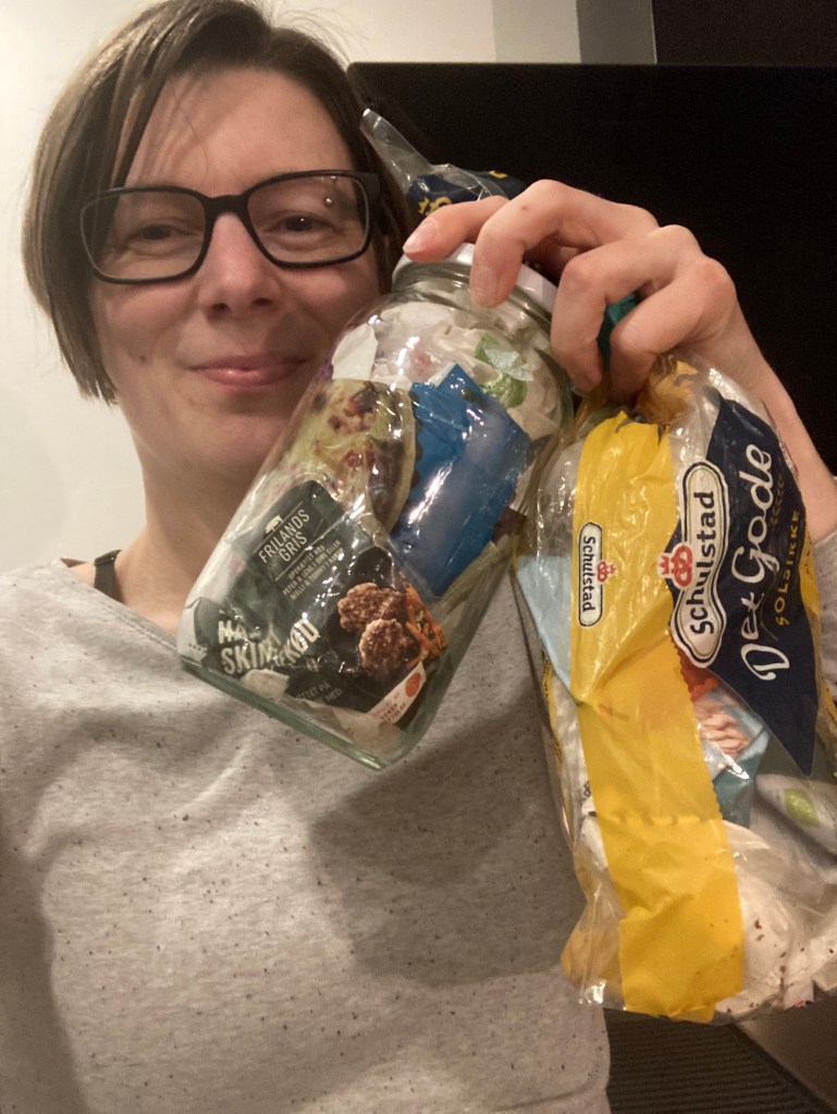 Endeligt har vi sideløbende registreret at vi har haft nogle slik og chipsposer i vores affald, som vi gerne ville af med. Samtidig er vi også begyndt at italesætte, at vi gerne vil snacke lidt mindre om aftnerne herhjemme, og det kan jo forhåbentligt også føre til lidt mindre affald på den front.