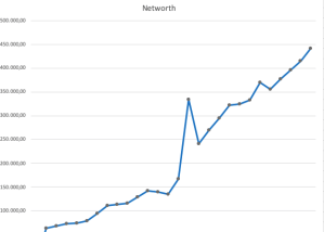 Networth er den samlede mængde penge du er god for, altså alle dine aktiver (opsparinger, aktier, mv.) fratrukket de passiver (gæld) du måtte have. Jeg vender tilbage hver måned og beregner hvad min networth er, og sætter mig årligt et mål om hvor meget min networth skal stige det kommende år.