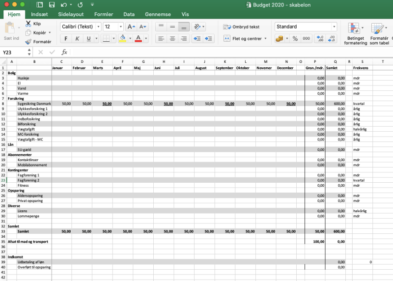 Her kan du downloade det budgetark jeg arbejder ud fra, når jeg håndterer vores indkomne løn. Jeg kører med et nul-sum-budget, hvilket betyder at jeg beregner hvor meget jeg skal overføre til vores budgetkonto til de faste udgifter hver måned. Derefter lader jeg et forudbestemt beløb blive stående på kontoen til mad og benzin-udgifter i løbet af måneden.